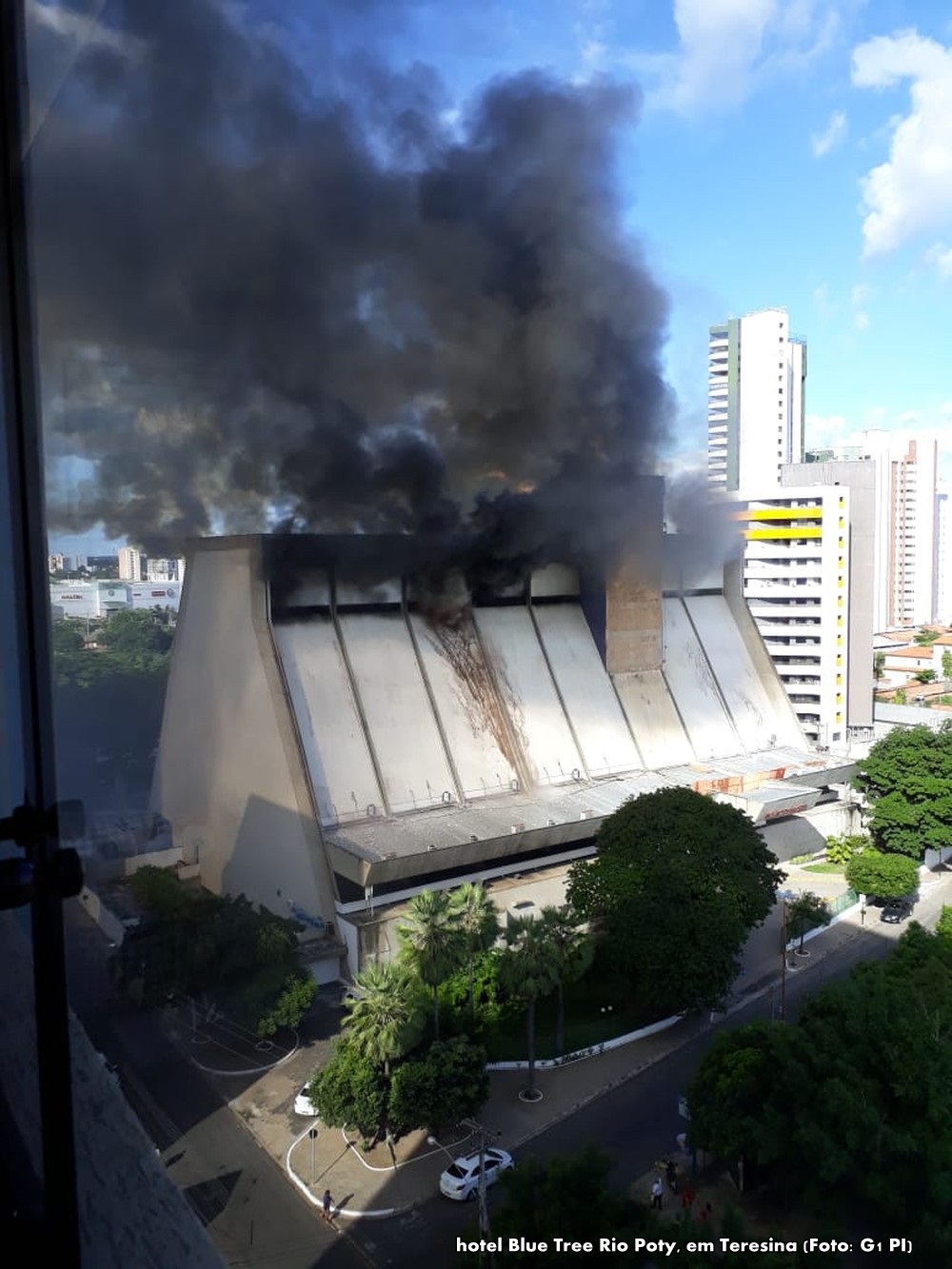 Um incêndio de grande proporção atingiu o hotel Blue Tree Rio Poty, em Teresina, na tarde desta terça-feira (29). Hóspedes precisaram pular para ter acesso a escada de emergência. Uma mulher grávida e uma funcionária usaram lençóis para descer os andares. Elas ficaram feridas nas pernas e foram socorridas pelo Samu.