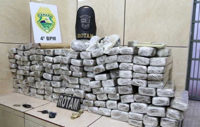 Depois de uma denúncia anônima feita no 181, policiais da Rondas Ostensivas Tático Móvel (ROTAM) do 4º Batalhão de Maringá realizaram uma grande apreensão de drogas em uma residência no Conjunto Patrícia. A PM conseguiu apreender 115 quilos de maconha e 1 quilo de haxixe.