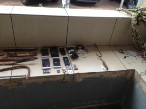 Foram encontrados celulares, carregadores e armas feitas com pedaços de ferro que foram arrancados das grades.
