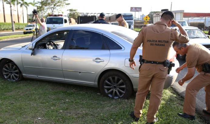 No trevo do Shopping Catuaí em Maringá, o suspeito que dirigia o Azera se perdeu na rotatória e acabou colidindo o veículo contra o meio-fio. Os policiais militares efetuaram tiros contra a lataria do automóvel para conter o suspeito.