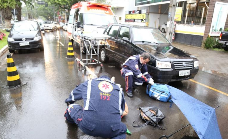 A pedestre só não ficou mais ferida porque o motorista do carro estava em baixa velocidade. Uma equipe do Samu deslocou até o local do acidente para dar atendimento a mulher que sofreu ferimentos no braço e pernas.