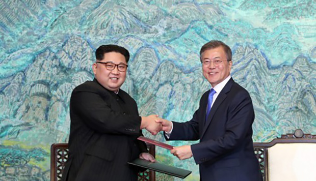 Uma das fotos divulgadas pela Casa Azul no sábado mostrou Moon e Kim se abraçando após o encontro em Tongilgak, o prédio do Norte na aldeia da trégua. A cúpula anterior foi realizada no lado Sul da fronteira.